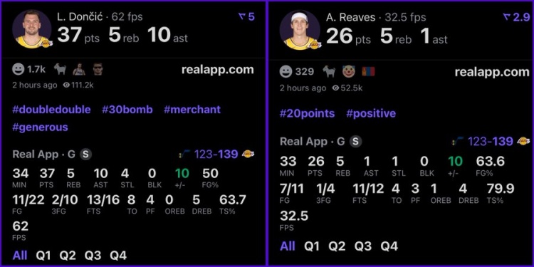 Sau trận đấu, 𝐏𝐮𝐫𝐩𝑮𝒐𝒍𝒅 của Lakers đã đăng số liệu thống kê về Doncic và Reeves và nói: "Thật buồn cười khi họ nói rằng James sẽ kéo họ xuống."