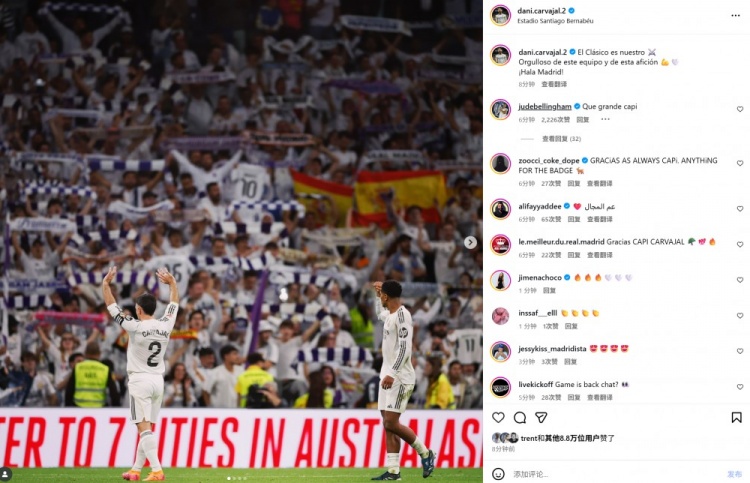 Carvajal vào sân thay người trong trận đấu này. Sau trận đấu, anh cũng đăng một bức ảnh ăn mừng chiến thắng lên mạng xã hội với dòng chữ: "Chiến thắng El Clasico thuộc về chúng tôi. Chúng tôi tự hào về đội bóng này và những người hâm mộ như vậy! Cố lên Real Madrid!"