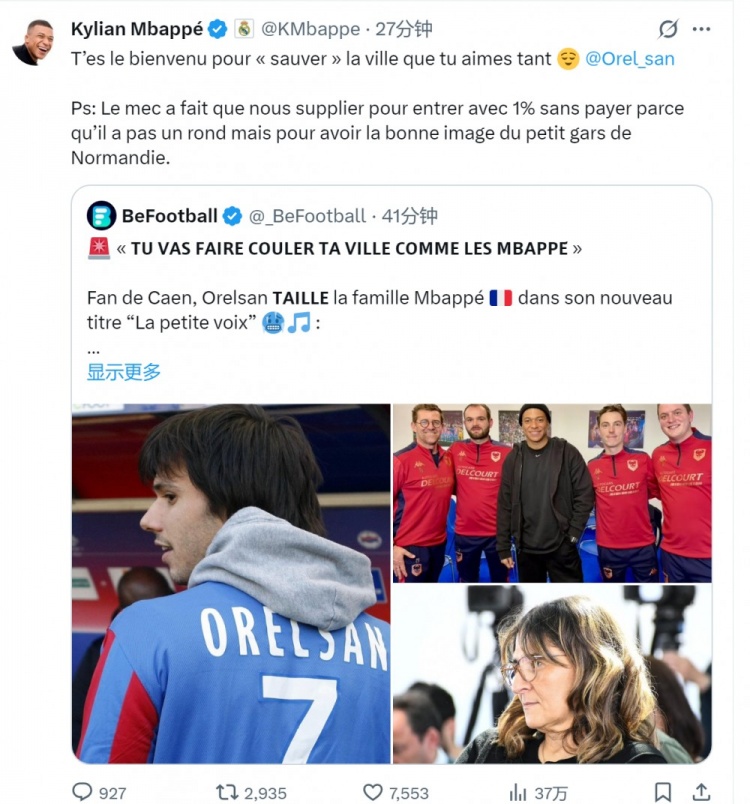 Người hâm mộ đội Caen và nhạc sĩ Orelson đã chế nhạo gia đình Kypbapp trong một bài hát mới. Ông chủ câu lạc bộ Caen đã đăng câu trả lời trên mạng xã hội.