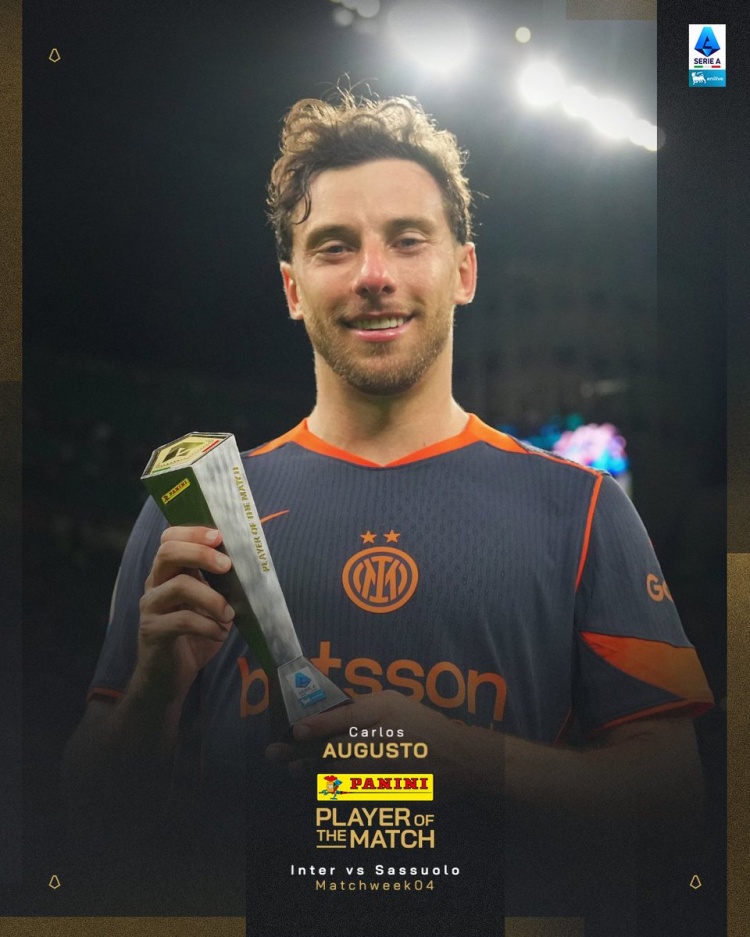 Inter Milan đã đánh bại Sassuolo 2-1 ở Serie A, và Carlos Augusto toàn diện của Inter Milan đã được bầu làm tốt nhất trong trò chơi sau trận đấu.